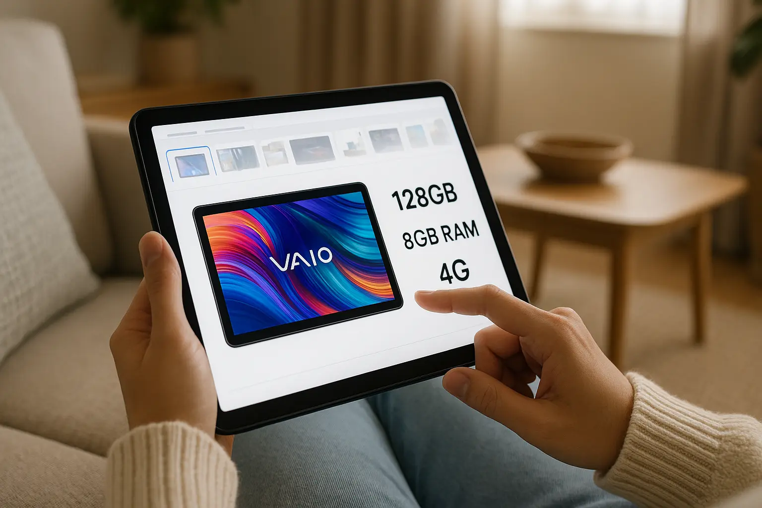 O tablet Vaio TL10 possui 128GB de armazenamento, 8GB de RAM e conectividade 4G, oferecendo bom desempenho e mobilidade.